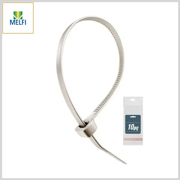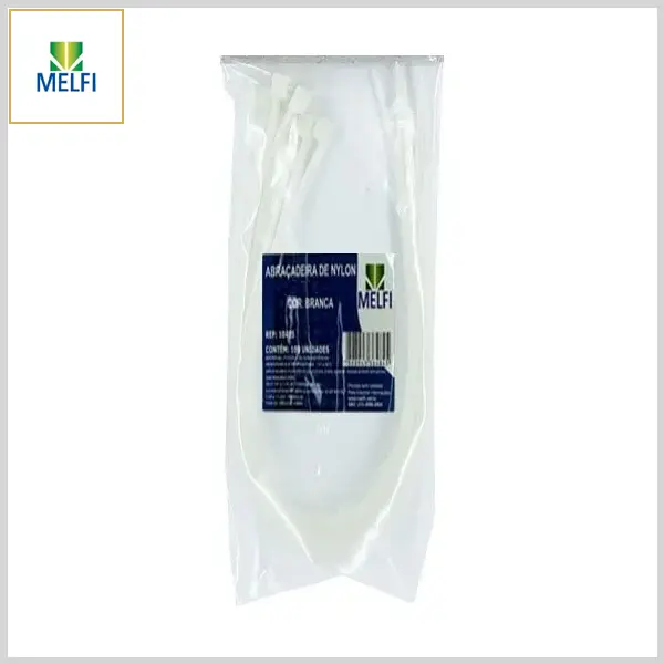 Abraçadeira Plástica Nylon6.6 Flexível Enforca-Gato (Branca, Emb.c/10pçs) - 400mm x 12.0mm - Melfi