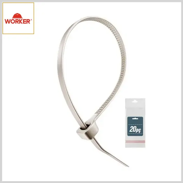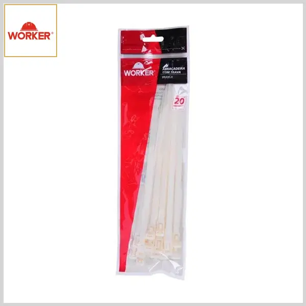 Abraçadeira Plástica Nylon6.6 Flexível Enforca-Gato (Branca, Emb.c/20pçs) - 150mm x 7.6mm - Worker
