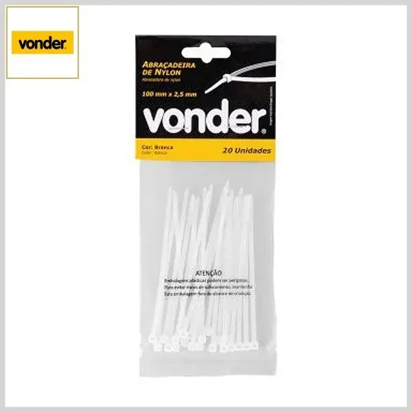 Abraçadeira Plástica Nylon6.6 Flexível Enforca-Gato (Branca, Emb.c/20pçs) - 100mm x 2.5mm - Vonder