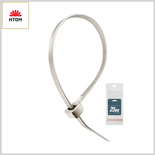 Abraçadeira Plástica Nylon6.6 Flexível Enforca-Gato (Branca, Emb.c/25pçs) - 800mm x 8.8mm - Htom
