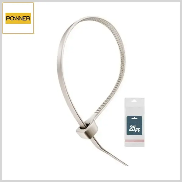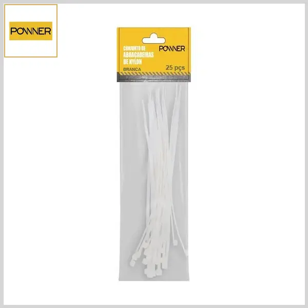 Abraçadeira Plástica Nylon6.6 Flexível Enforca-Gato (Branca, Emb.c/25pçs) - 180mm x 4.5mm - Powner