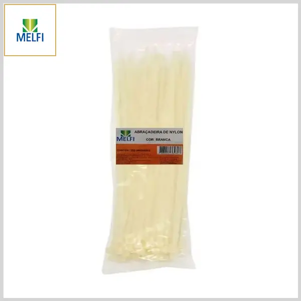 Abraçadeira Plástica Nylon6.6 Flexível Enforca-Gato (Branca, Emb.c/50pçs) - 200mm x 7.6mm - Melfi