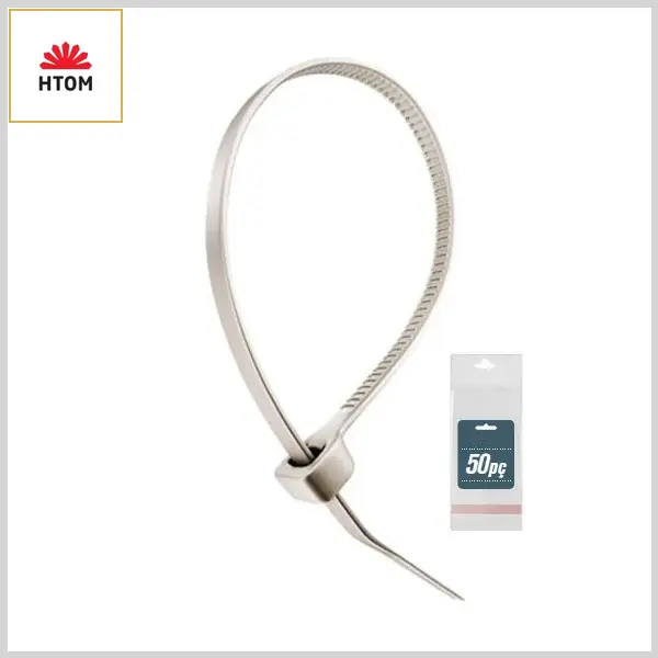 Abraçadeira Plástica Nylon6.6 Flexível Enforca-Gato (Branca, Emb.c/50pçs) - 300mm x 7.6mm - Htom
