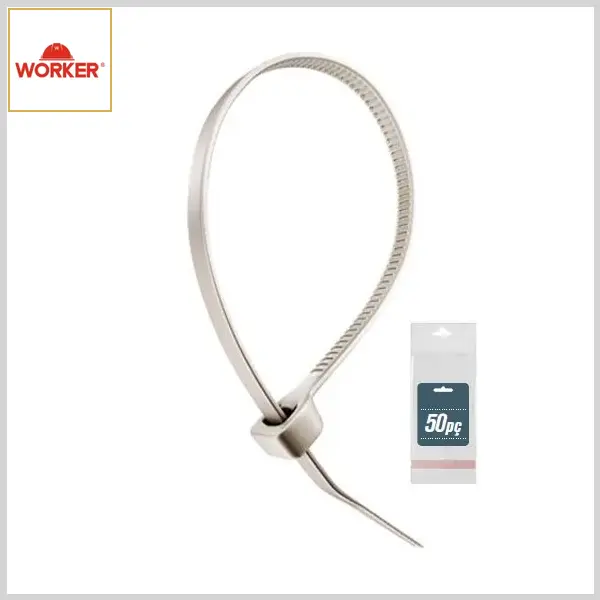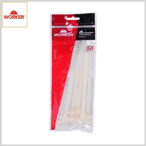 Abraçadeira Plástica Nylon6.6 Flexível Enforca-Gato (Branca, Emb.c/50pçs) - 150mm x 7.2mm - Worker