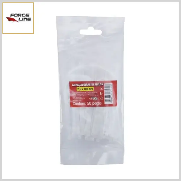 Abraçadeira Plástica Nylon6.6 Flexível Enforca-Gato (Branca, Emb.c/50pçs) - 100mm x 2.5mm - Forceline