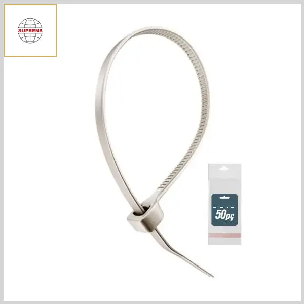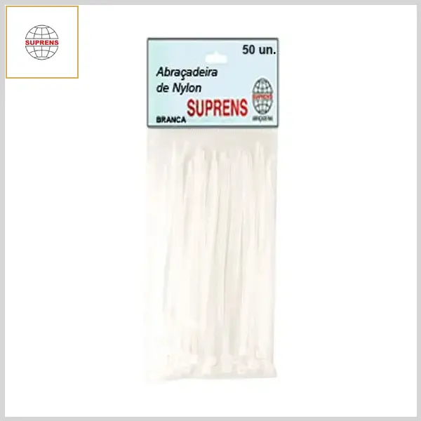 Abraçadeira Plástica Nylon6.6 Flexível Enforca-Gato (Branca, Emb.c/50pçs) - 200mm x 7.6mm - Suprens