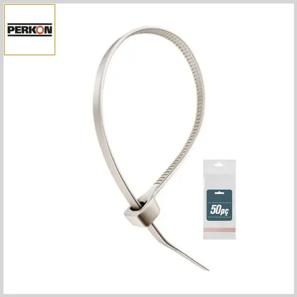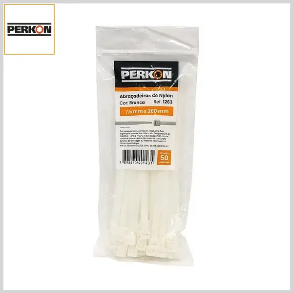 Abraçadeira Plástica Nylon6.6 Flexível Enforca-Gato (Branca, Emb.c/50pçs) - 200mm x 7.6mm - Perkon