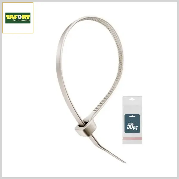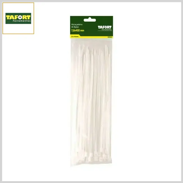 Abraçadeira Plástica Nylon6.6 Flexível Enforca-Gato (Branca, Emb.c/50pçs) - 400mm x 7.6mm - Tafort