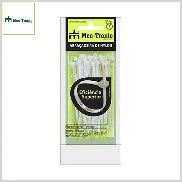 Abraçadeira Plástica Nylon6.6 Flexível Enforca-Gato (Branca, Emb.c/50pçs) - 100mm x 2.5mm - Mec-Tronic