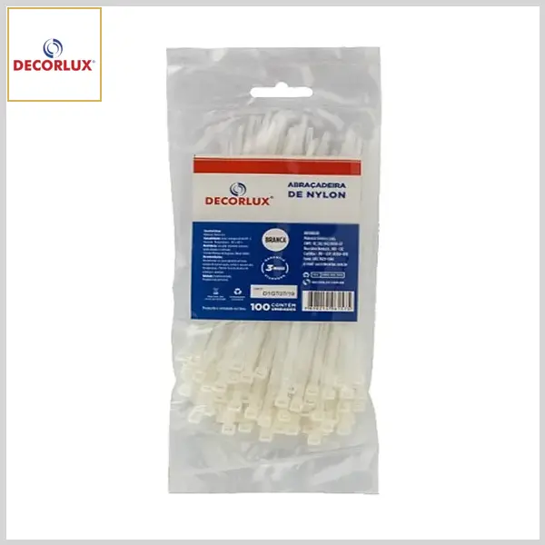 Abraçadeira Plástica Nylon6.6 Flexível Enforca-Gato (Branca, Emb.c/100pçs) - 100mm x 2.5mm - Decorlux
