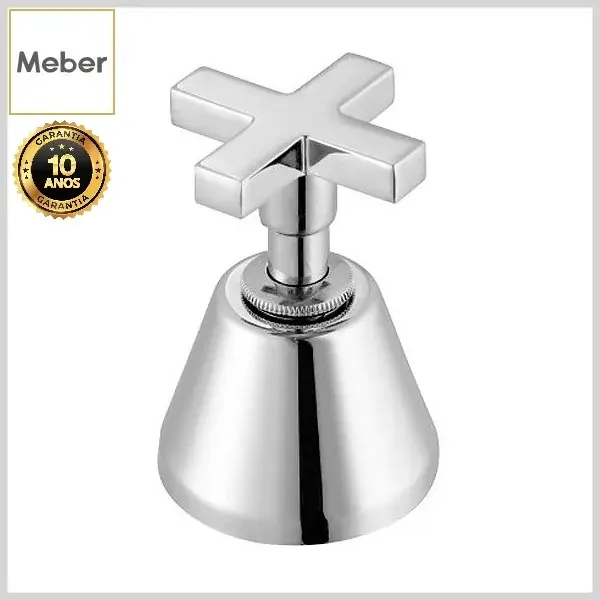 Os acabamentos Meber com kit para registros Docol são compostos por canoplas e volantes, produzidos com ligas de cobre (bronze e latão) e plásticos de engenharia, com acabamento cromado.