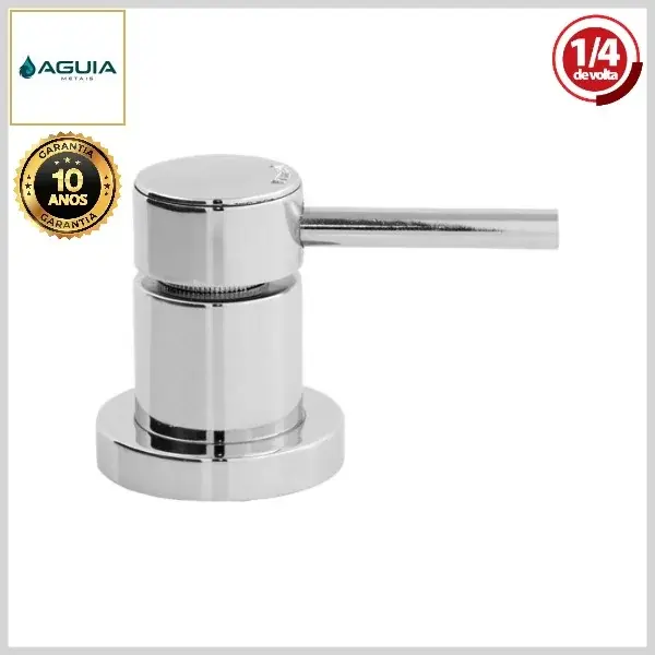 Os acabamentos de registros da Águia Metais são compostos por canoplas e volantes, produzidos com ligas metálicas e plásticos de engenharia, com acabamento cromado brilhante.