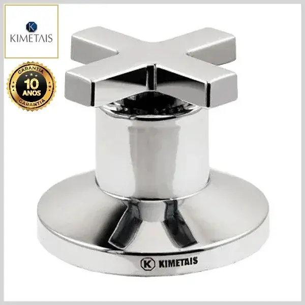 Os acabamentos de registros da KiMetais são compostos por canoplas e volantes, produzidos com ligas de latão (cobre e zinco) e plásticos de engenharia, com acabamento cromado brilhante ou com opção de cores.