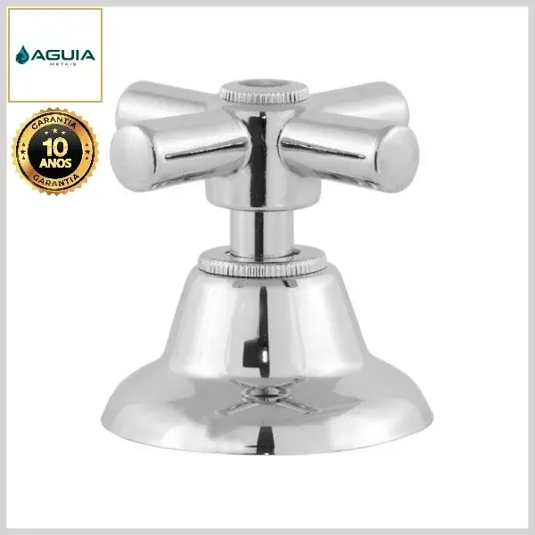 Os acabamentos de registros da Águia Metais são compostos por canoplas e volantes, produzidos com ligas metálicas e plásticos de engenharia, com acabamento cromado brilhante.