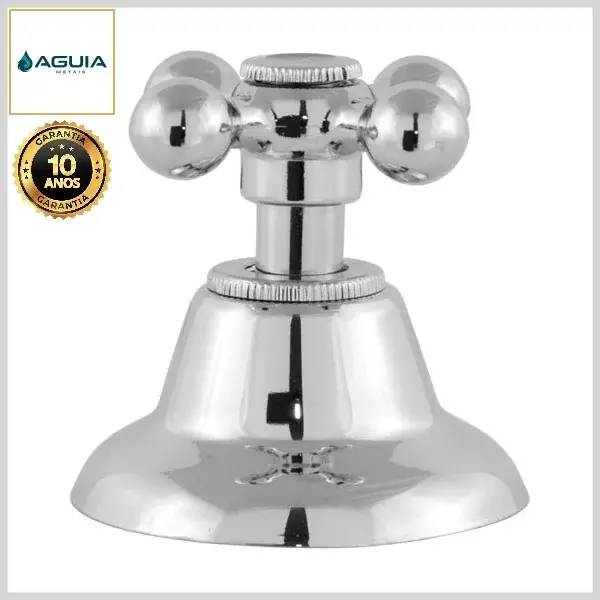 Os acabamentos de registros da Águia Metais são compostos por canoplas e volantes, produzidos com ligas metálicas e plásticos de engenharia, com acabamento cromado brilhante.