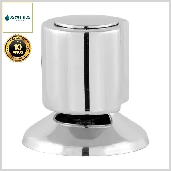 Os acabamentos de registros da Águia Metais são compostos por canoplas e volantes, produzidos com ligas metálicas e plásticos de engenharia, com acabamento cromado brilhante.