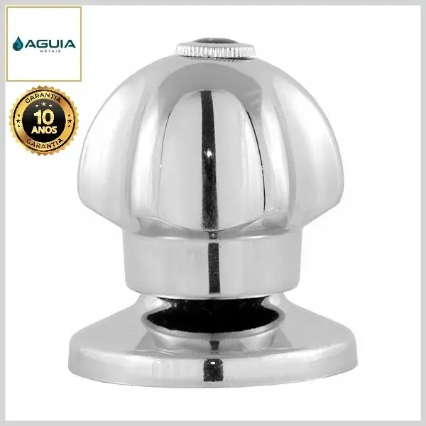 Os acabamentos de registros da Águia Metais são compostos por canoplas e volantes, produzidos com ligas metálicas e plásticos de engenharia, com acabamento cromado brilhante.