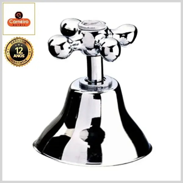 Os acabamentos de registros da Carneiro Metais são compostos por canoplas e volantes, produzidos com ligas de cobre (bronze e latão) e plásticos de engenharia, com acabamento cromado brilhante.