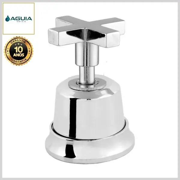 Os acabamentos de registros da Águia Metais são compostos por canoplas e volantes, produzidos com ligas metálicas e plásticos de engenharia, com acabamento cromado brilhante.