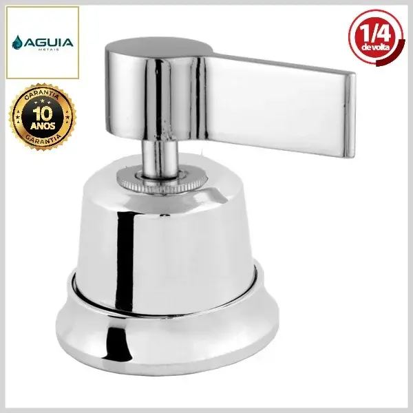 Os acabamentos de registros da Águia Metais são compostos por canoplas e volantes, produzidos com ligas metálicas e plásticos de engenharia, com acabamento cromado brilhante.
