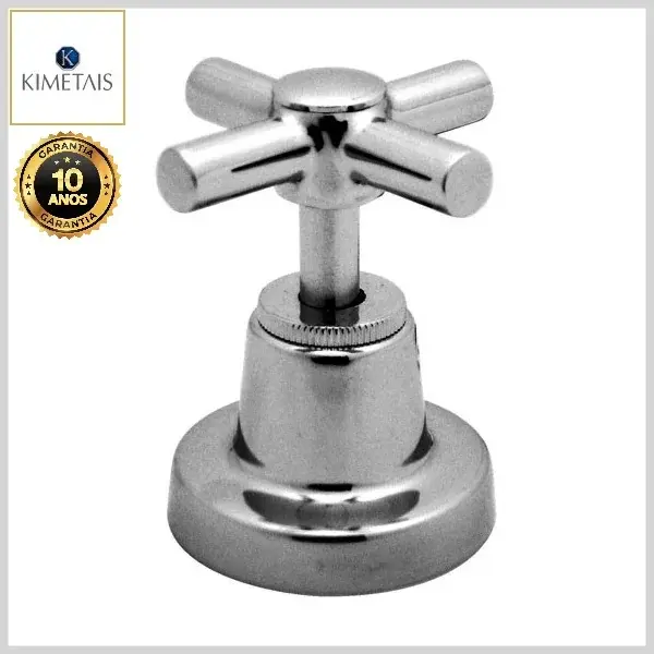 Os acabamentos de registros da KiMetais são compostos por canoplas e volantes, produzidos com ligas de latão (cobre e zinco) e plásticos de engenharia, com acabamento cromado brilhante ou com opção de cores.