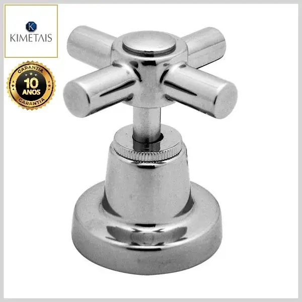 Os acabamentos de registros da KiMetais são compostos por canoplas e volantes, produzidos com ligas de latão (cobre e zinco) e plásticos de engenharia, com acabamento cromado brilhante ou com opção de cores.