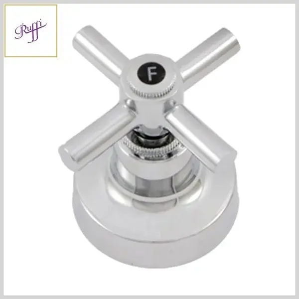 Os acabamentos de registros da Ruffi Metais são compostos por canoplas e volantes, produzidos com ligas metálicas e plásticos de engenharia, com acabamento cromado brilhante.