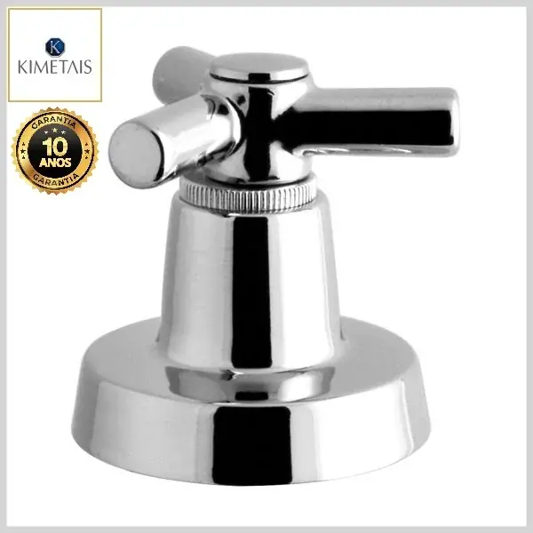 Os acabamentos de registros da KiMetais são compostos por canoplas e volantes, produzidos com ligas de latão (cobre e zinco) e plásticos de engenharia, com acabamento cromado brilhante ou com opção de cores.