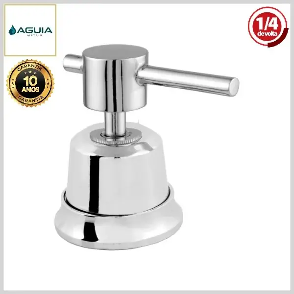 Os acabamentos de registros da Águia Metais são compostos por canoplas e volantes, produzidos com ligas metálicas e plásticos de engenharia, com acabamento cromado brilhante.