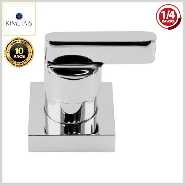 Os acabamentos de registros da KiMetais são compostos por canoplas e volantes, produzidos com ligas de latão (cobre e zinco) e plásticos de engenharia, com acabamento cromado brilhante ou com opção de cores.