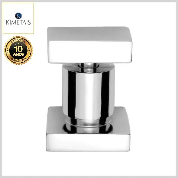 Os acabamentos de registros da KiMetais são compostos por canoplas e volantes, produzidos com ligas de latão (cobre e zinco) e plásticos de engenharia, com acabamento cromado brilhante ou com opção de cores.