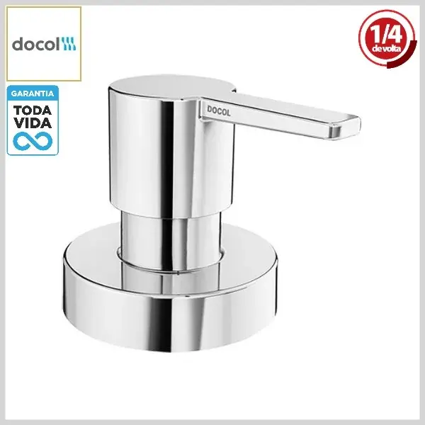 Os acabamentos Docol com kit para registros Fabrimar são compostos por canoplas e volantes, produzidos com ligas de cobre e zamac (bronze, latão e zinco) e plásticos de engenharia, com acabamento cromado.