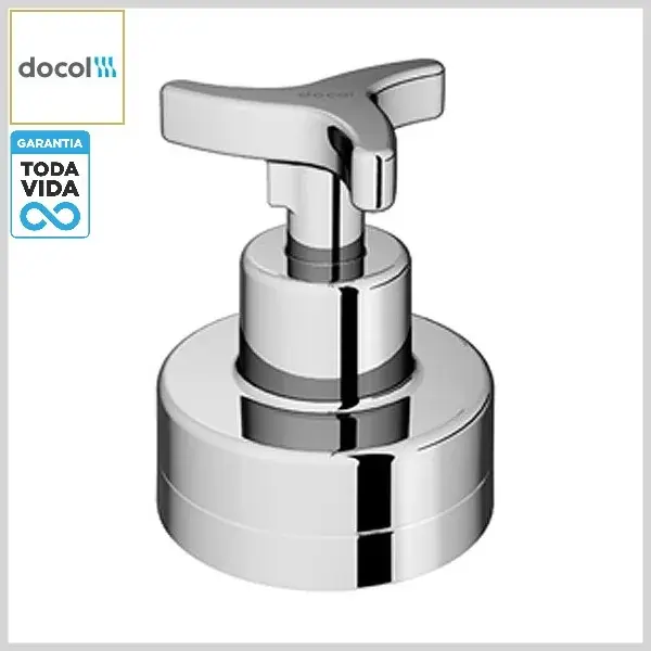 Os acabamentos Docol com kit para registros Deca são compostos por canoplas e volantes, produzidos com ligas de cobre e zamac (bronze, latão e zinco) e plásticos de engenharia, com acabamento cromado.