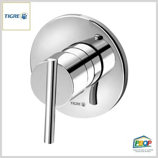 Produto com volante e canopla em metal cromado, sendo indicado para uso exclusivo no acabamento e manobra (fechamento, abertura e mistura de água quente e fria) em bases monocomando de banho da linha Tigre.