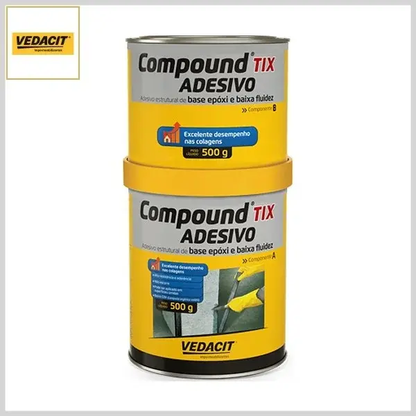 Adesivo Estrutural Compound TIX Base Epóxi, 1kg(A+B) - Lata A +Lata B - Vedacit
