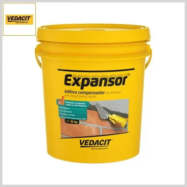 Expansor é um aditivo compensador de retração para argamassas secas. Sua ação compensa e impede a retração natural das argamassas, evitando fissuras. Preenche totalmente os espaços vazios, o que facilita sua aplicação em frestas e locais confinados.