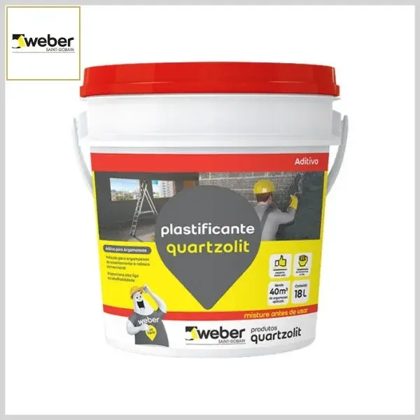 Plastificante Quartzolit é um aditivo incorporador de ar, de cor marrom claro que possui ação plastificante e é indicado para aumentar a coesão, reduzir a permeabilidade e melhorar a consistência das argamassas de assentamento e revestimentos internos e externos, podendo ser utilizado em substituição à cal.