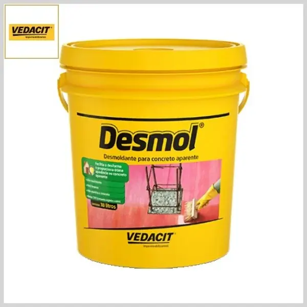 Desmol forma uma fina camada oleosa entre o concreto e as fôrmas, impedindo a aderência entre ambos e possibilitando grande reaproveitamento das fôrmas. Facilita a limpeza e remoção sem danificar nem manchar as superfícies e arestas do concreto.