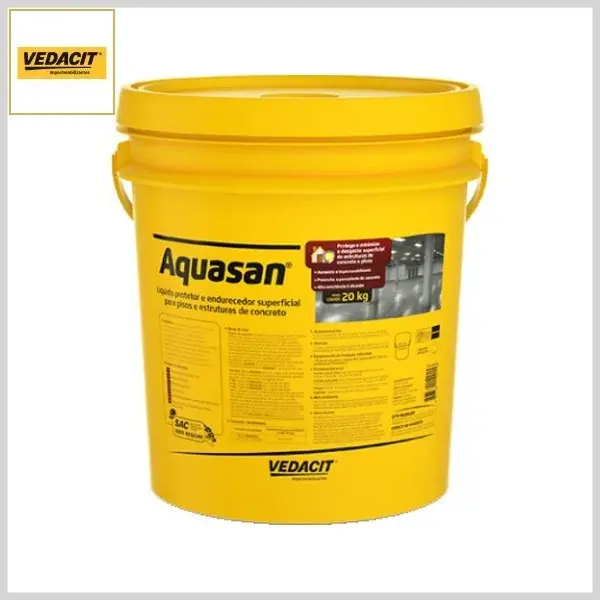 Aquasan é um agente cristalizante, solúvel em água, que colmata a porosidade do concreto e argamassas, aumentando sensivelmente sua impermeabilidade e resistência ao desgaste por abrasão, trazendo grande proteção as superfícies. Minimiza a formação de poeira nas superfícies cimentadas, facilitando a limpeza. Pode propiciar um brilho discreto.