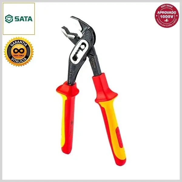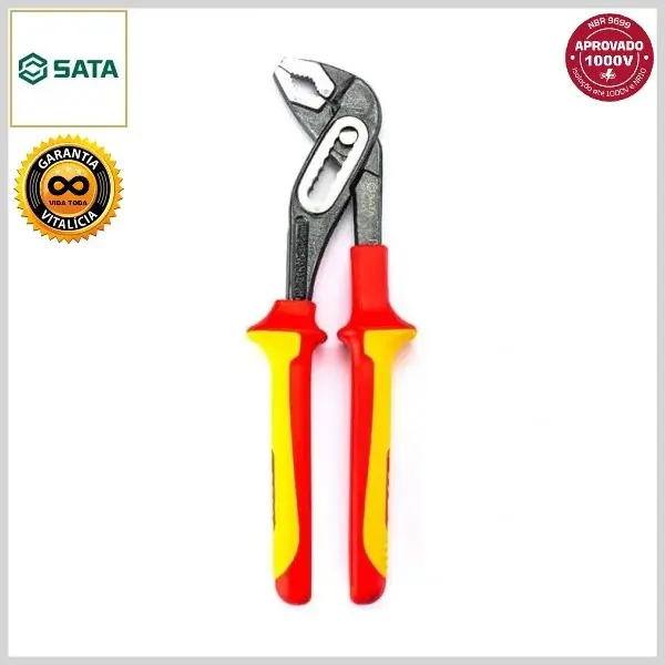 Alicate Bomba dÁgua Mordente Curvo Cromo Vanádio VDE-IEC Isolado c/Cabo Emborrachado - 10.0 pol (254mm) - Sata