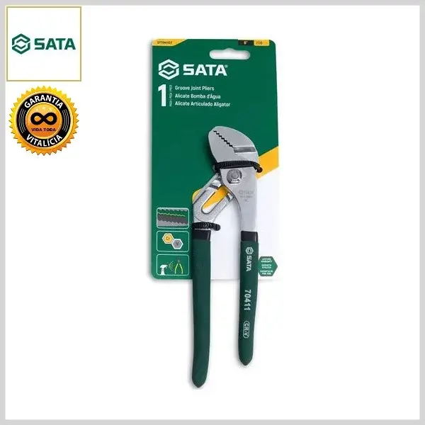 Alicate Bomba dÁgua Mordente Reto Cromo Vanádio c/Cabo Antideslizante - 8.0 pol (200mm) - Sata