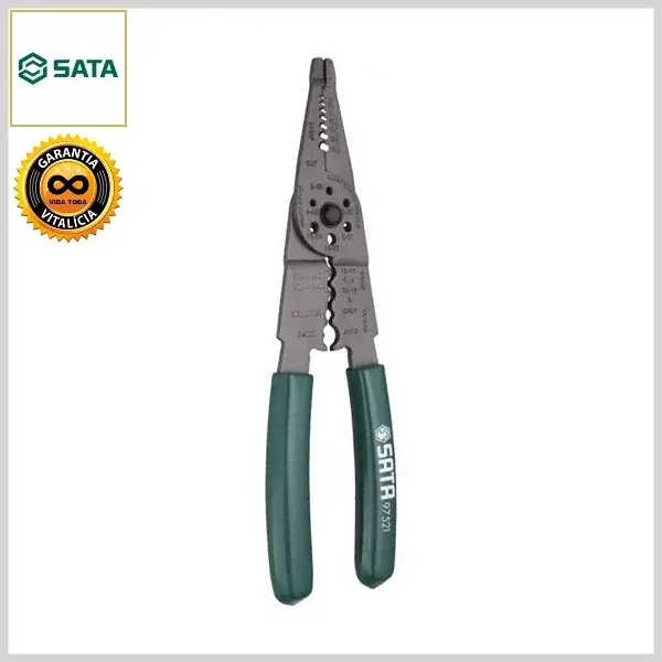 Alicate Crimpador/Descascador de Terminais/Fios Aço Carbono c/Cabo Antideslizante - 8.0 pol (200mm) - Sata