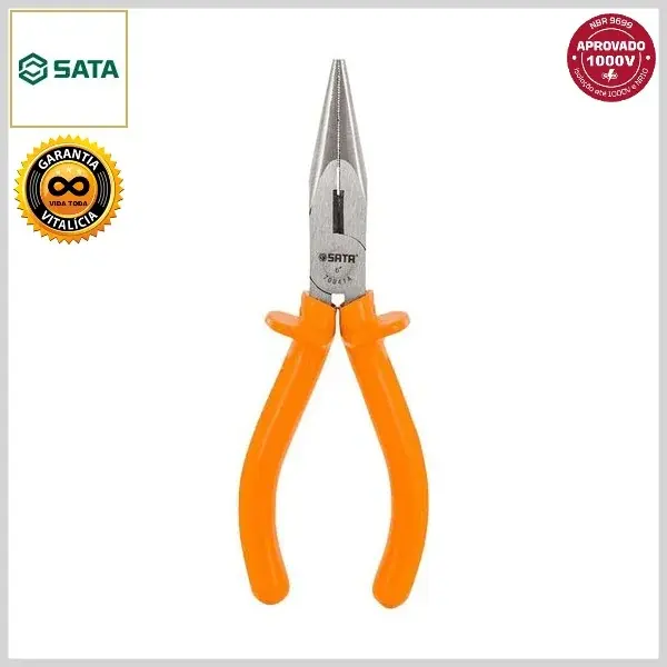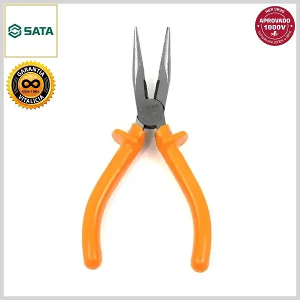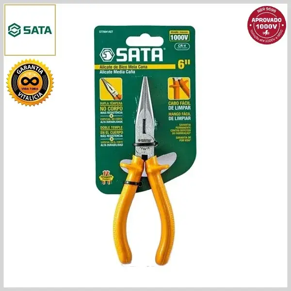 Alicate de Bico Meia-Cana Curto Cromo Vanádio Isolado c/Cabo Antideslizante - 6.0 pol (168mm) - Sata