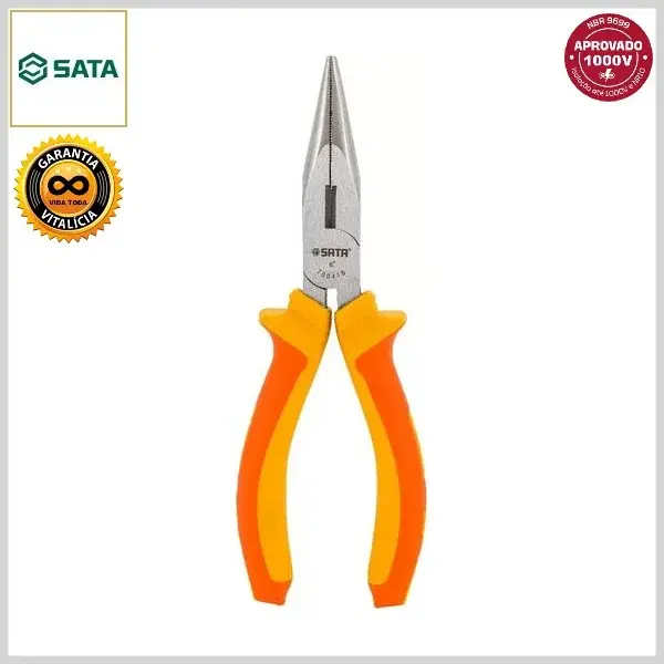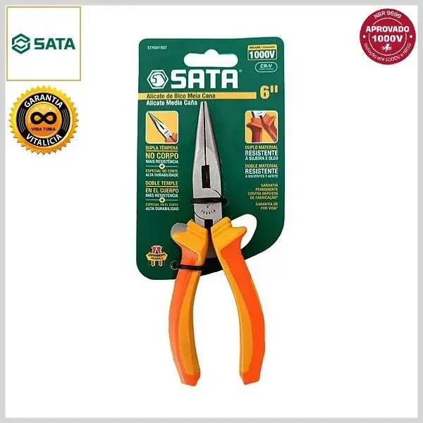 Alicate de Bico Meia-Cana Curto Cromo Vanádio Isolado c/Cabo Emborrachado - 6.0 pol (168mm) - Sata