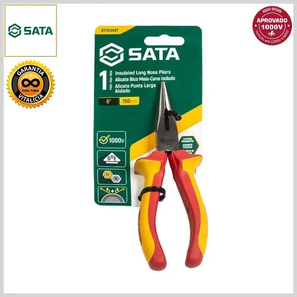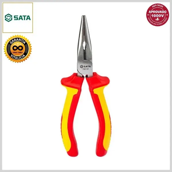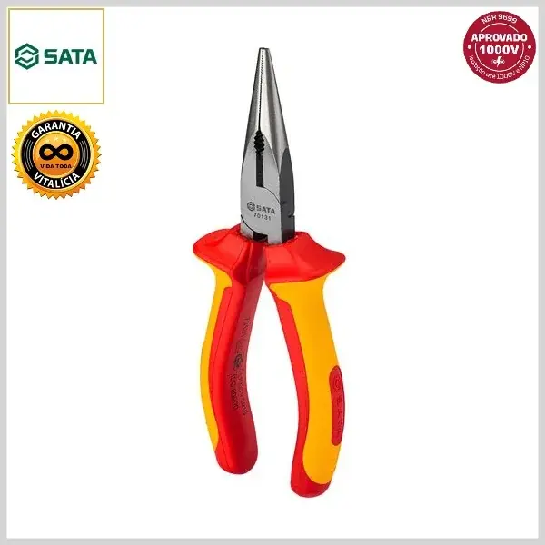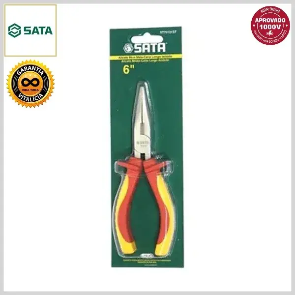 Alicate de Bico Meia-Cana Curto Cromo Vanádio VDE-IEC Isolado c/Cabo Emborrachado - 6.0 pol (166mm) - Sata