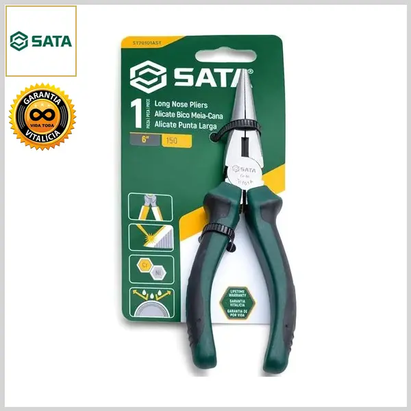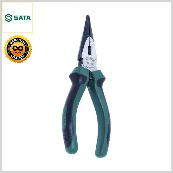 Alicate de Bico Meia-Cana Longo Cromo Níquel c/Cabo Antideslizante - 6.0 pol (165mm) - Sata