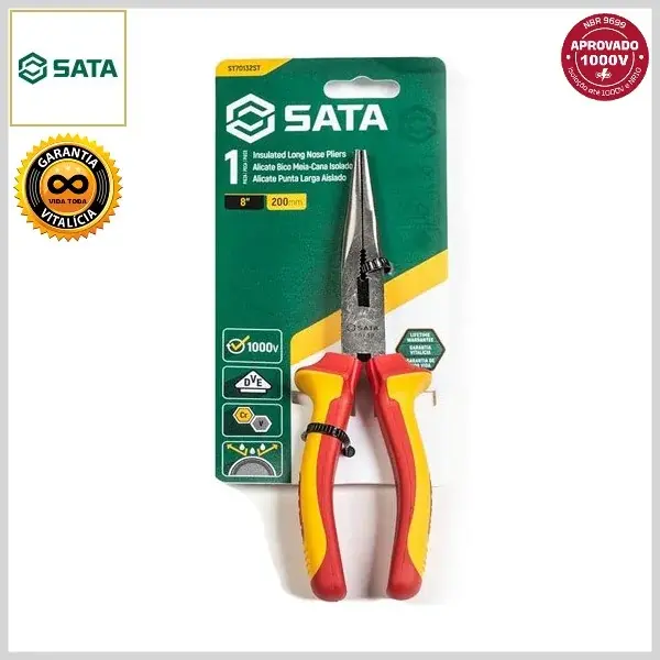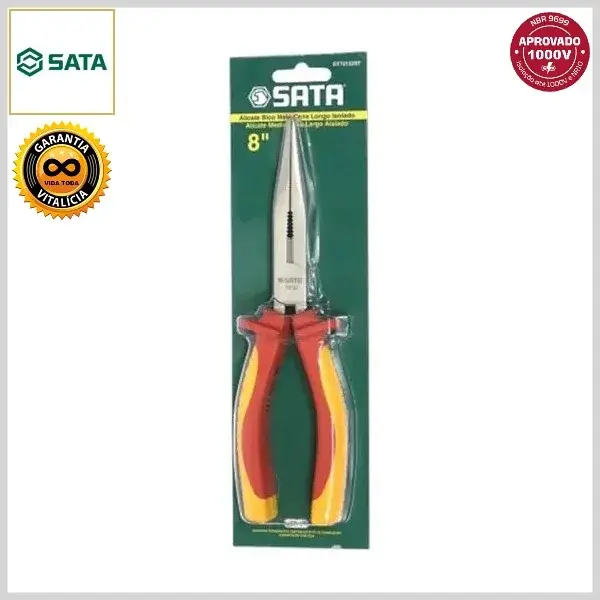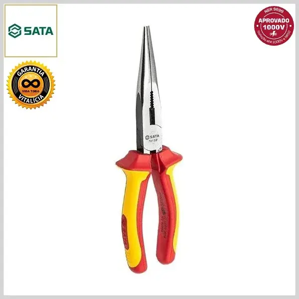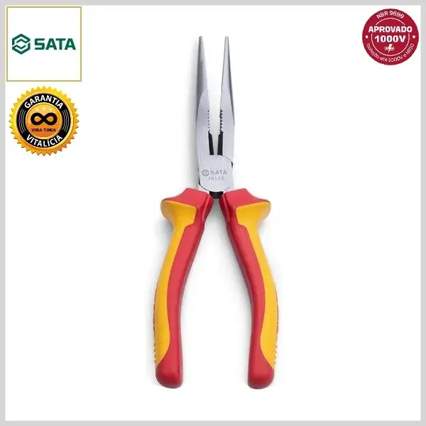 Alicate de Bico Meia-Cana Longo Cromo Vanádio VDE-IEC Isolado c/Cabo Emborrachado - 8.0 pol (212mm) - Sata