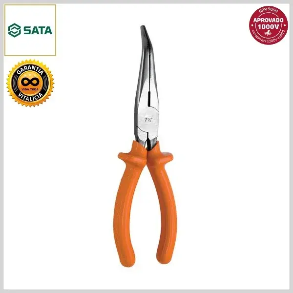 Alicate de Bico Meia-Cana Longo Curvo Cromo Vanádio Isolado c/Cabo Antideslizante - 7.½ pol (184mm) - Sata