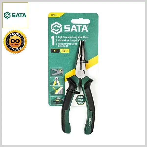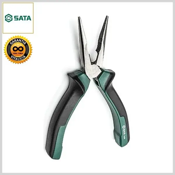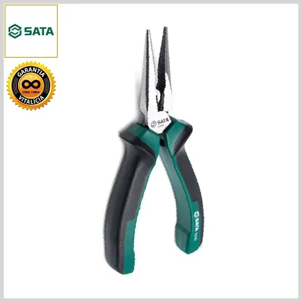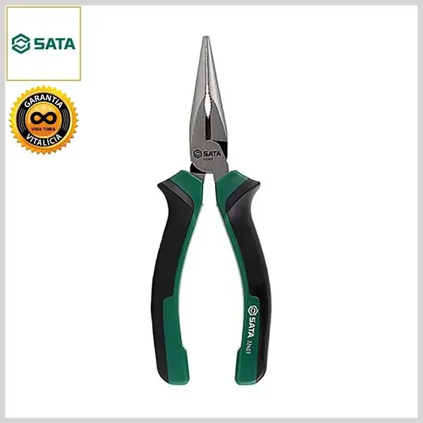 Alicate de Bico Meia-Cana Longo Reforçado Cromo Níquel c/Cabo Antideslizante - 6.0 pol (164.4mm) - Sata