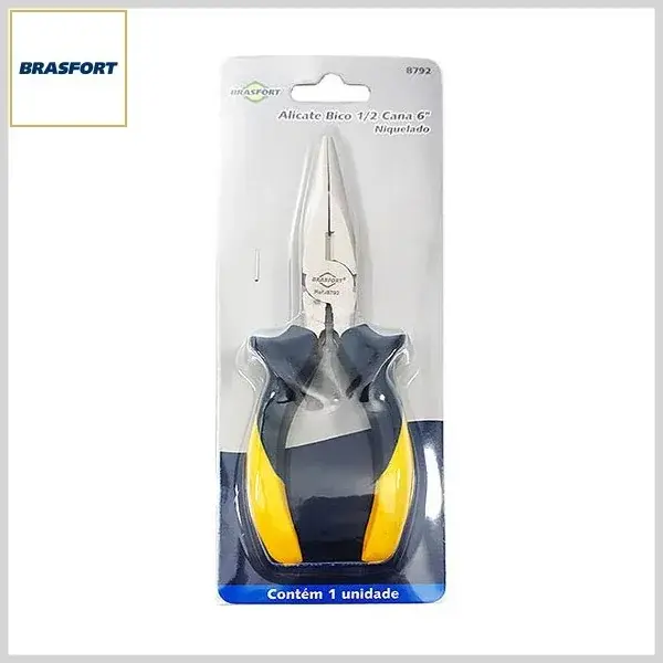 Alicate de Bico Meia-Cana Aço Carbono Niquelado c/Cabo TPR Emborrachado - 6.0 pol (152mm) - Brasfort